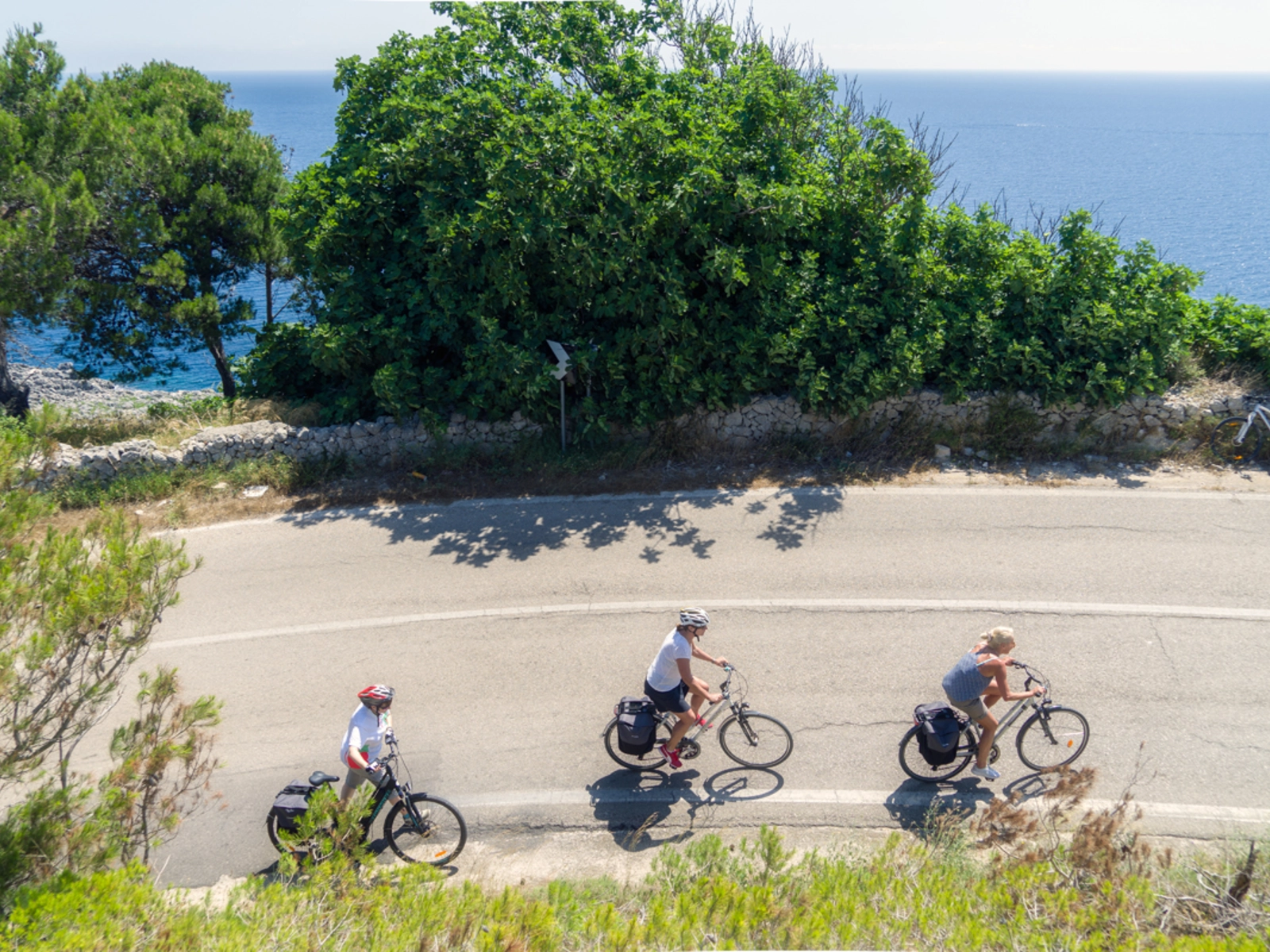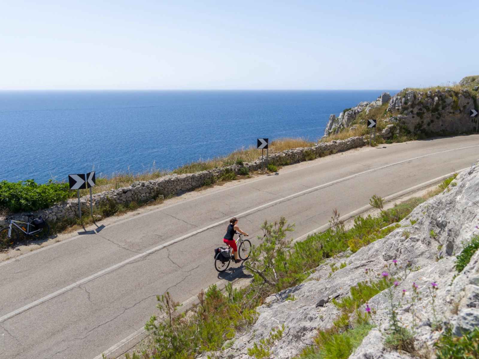 Cycle through Puglia's breathtaking landscapes, where the azure Adriatic Sea meets rugged cliffs and golden beaches. Ride along tranquil country roads lined with centuries-old olive trees, vineyards, and wildflowers, pausing to take in panoramic views of the rolling countryside and sparkling coastline. Feel the gentle sea breeze on your face as you pedal past historic masserie (farmhouses) and ancient watchtowers that dot the landscape, offering glimpses into the region's fascinating past.